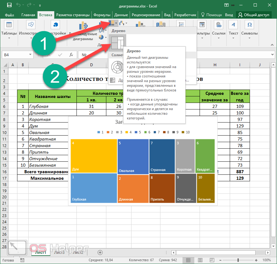 - Кликнув на любой из них, вы получите желаемую диаграмму.
