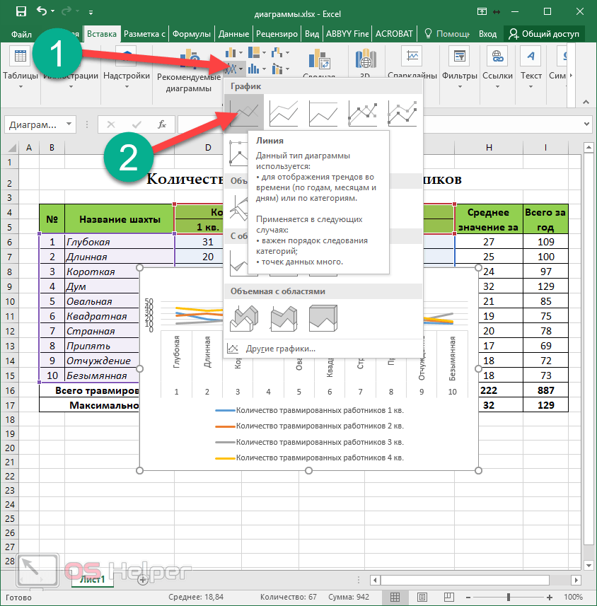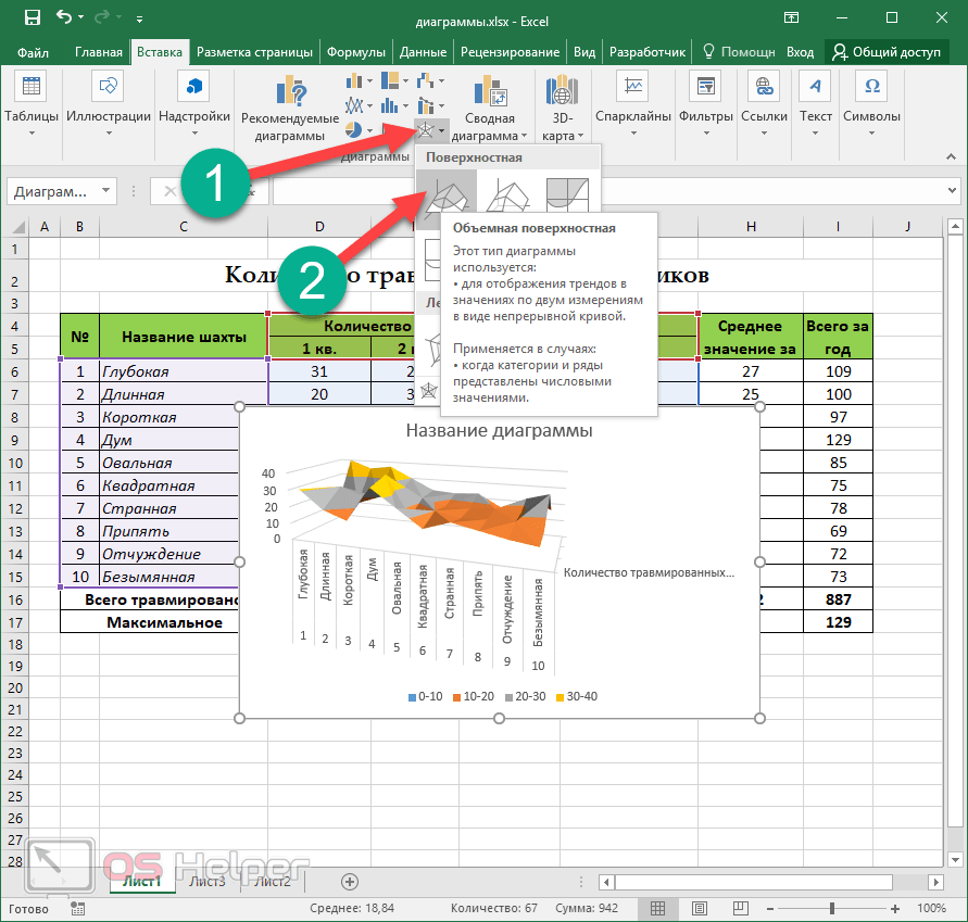 В программе есть сотни других типов графиков, их можно найти в меню Вставка. Путем проб и комбинаций с каждым нужно разбираться по-отдельности.