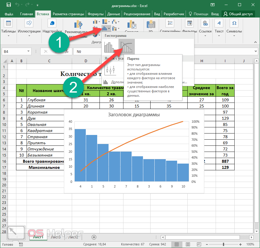 Поскольку через Эксель можно гибко обрабатывать числовые данные и другую информацию, инструмент построения диаграмм здесь также работает в разных направлениях. В этом редакторе есть как стандартные виды диаграмм, опирающиеся на стандартные данные, так и возможность создать объект для демонстрации процентных соотношений или даже наглядно отображающий закон Парето. Далее мы поговорим о разных методах создания этих объектов.
