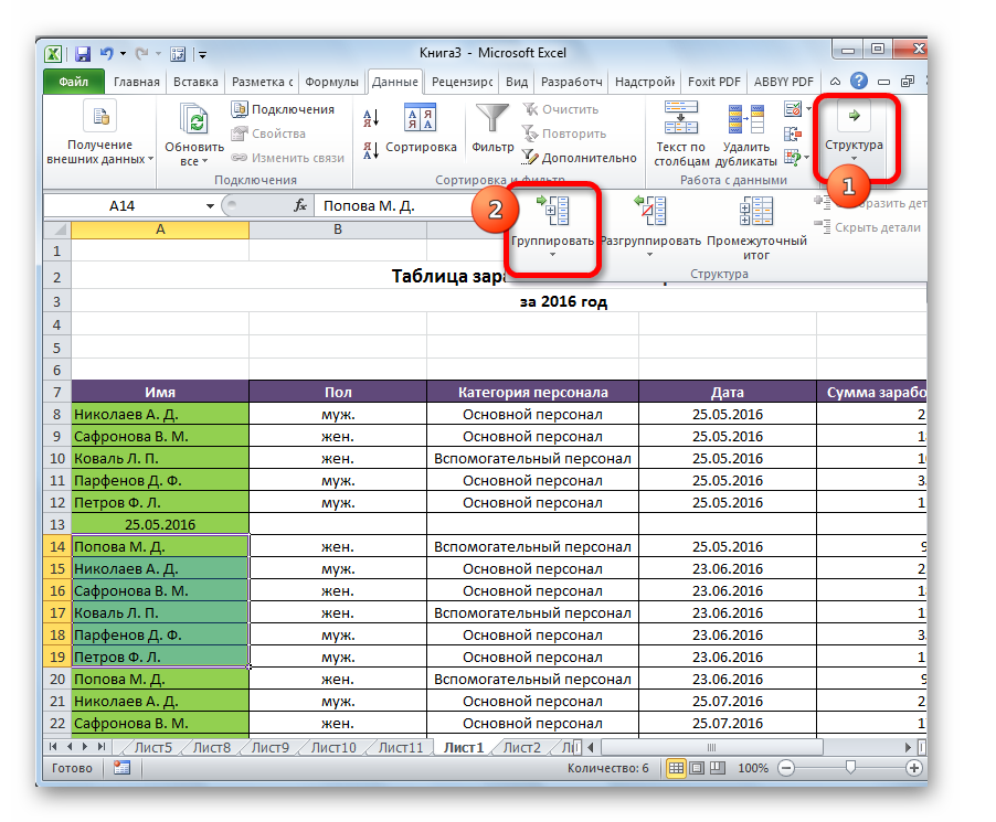 Создание структуры вручную позволяет держать весь процесс под контролем и гарантированно получить правильный результат. Чтобы структурировать лист вручную, выполните такие действия:
