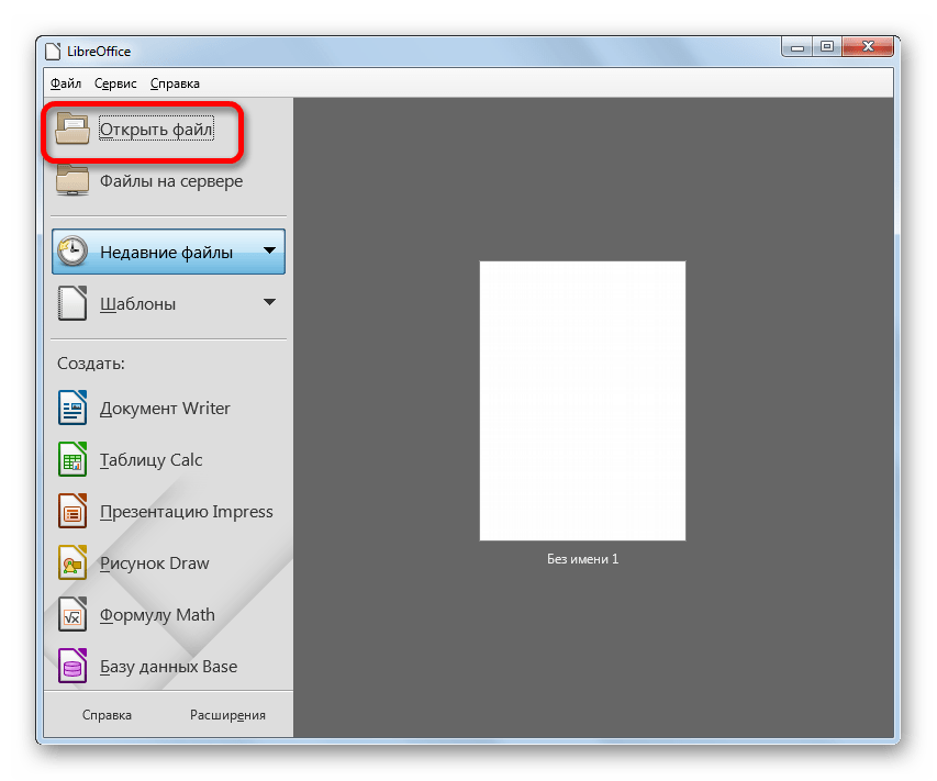 Кроме того, есть ещё один вариант запустить документ XLSX прямо через интерфейс главного окна пакета LibreOffice без предварительного перехода в Calc.