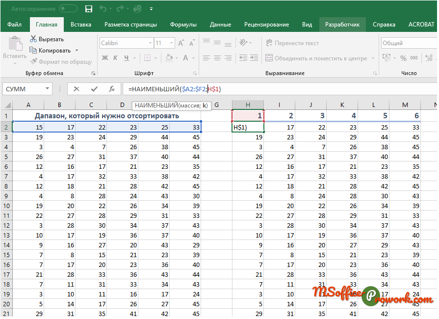 - С помощью функций или . Данный способ решает проблему большого количества данных по вертикали, умело оперируя , можно запросто сделать горизонтальную сортировку для большого количества данных. Но у этого способа есть один существенный недостаток, который, кстати, отсутствует в первом варианте, – это возможность сортировки только числовой информации. Да, к сожалению, для текста не подойдет.