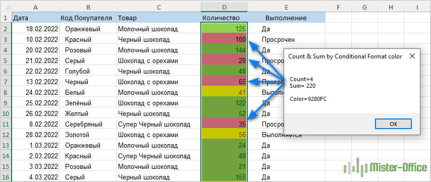 Как считать по цвету и суммировать ячейки, окрашенные с использованием условного форматирования