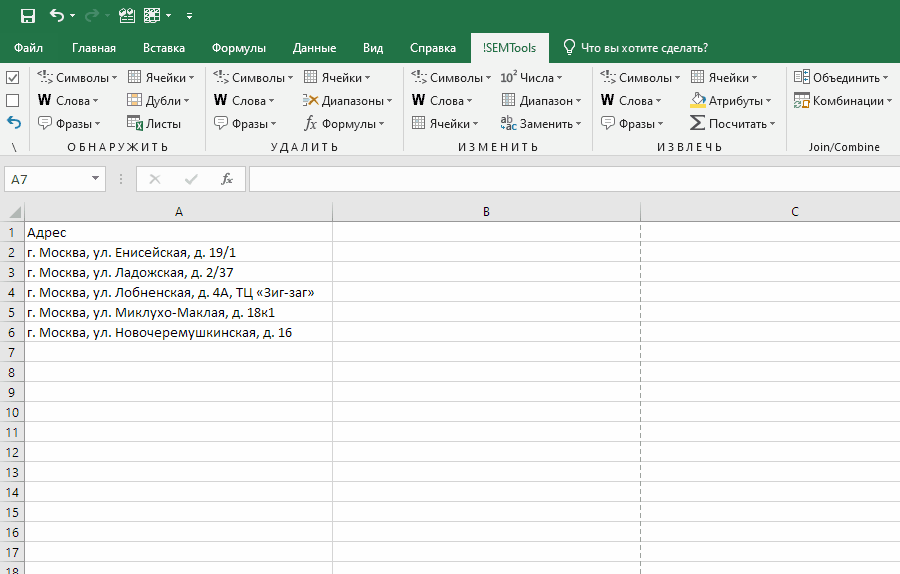 Для экономии времени я включил быстрые процедуры в меню своей надстройки для Excel – !SEMTools.