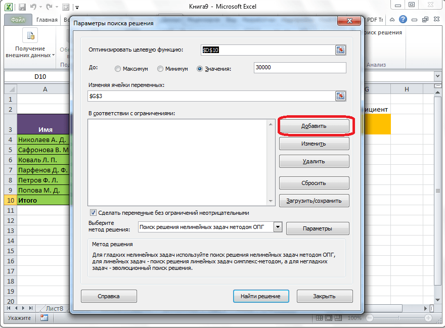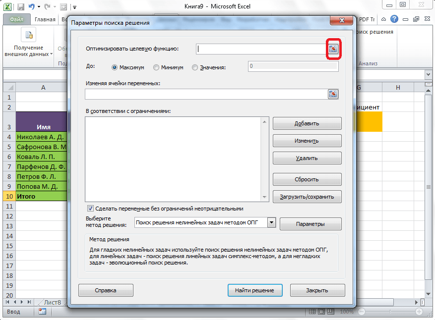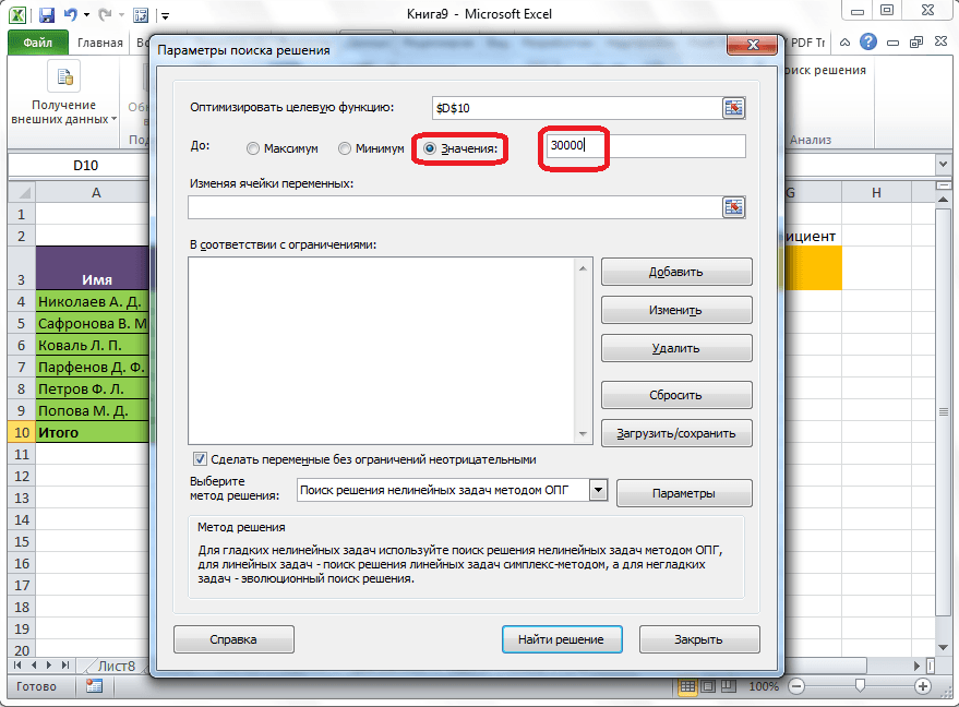 Как использовать надстройку Solver