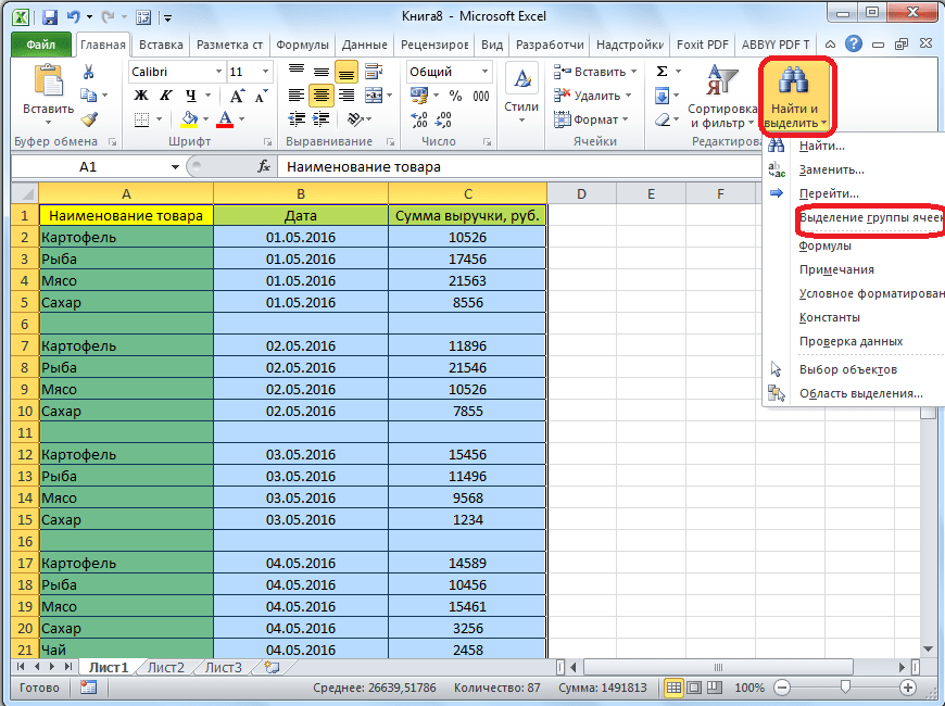 - Нажмите комбинацию клавиш Ctrl + A, чтобы выбрать все ячейки на листе.