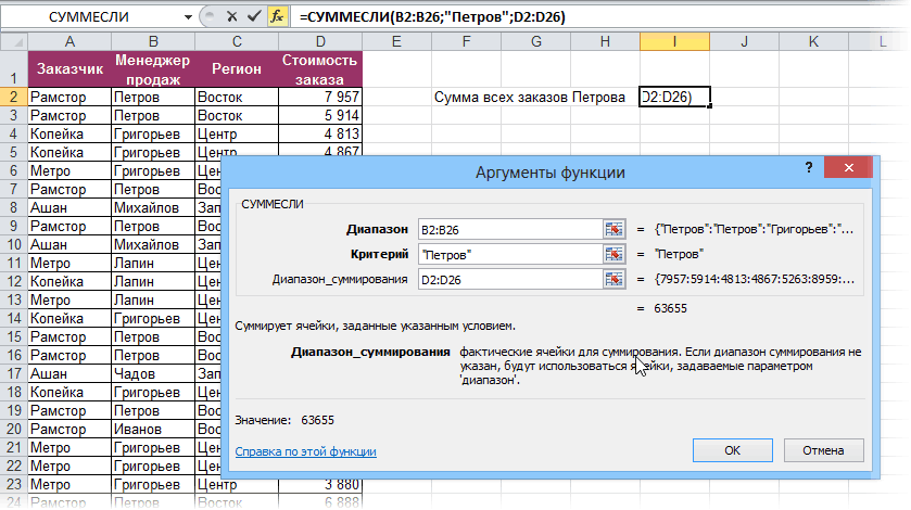 Обязательна только первая пара диапазон/критерий. Общее количество необязательных пар может достигать 126. Каждый дополнительный диапазон должен одинаковое с основным количество строк и столбцов, при этом диапазоны могут быть несмежными.