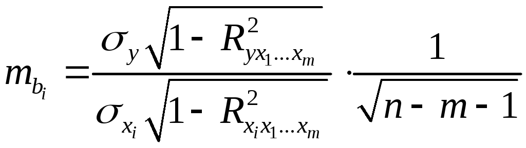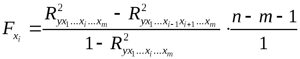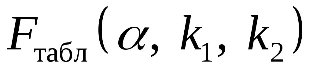 Если расчетное значение с k 1 =(m) и k 2 =(n-m-1) степенями свободы больше табличного при заданном уровне значимости, то модель считается значимой.