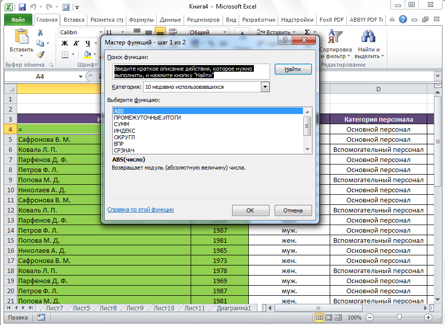 Открывает диалоговое окно Paste Name (Вставка имени). Для примера выберите ячейку Е2, как на рисунке ниже, введите “=SUM(” или “=СУММ(“, нажмите F3 и выберите имя.