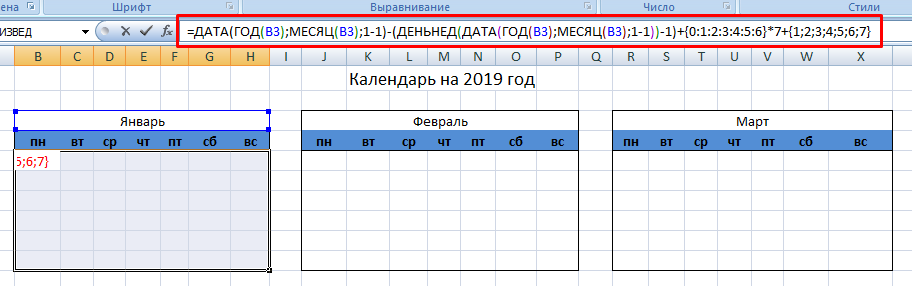 В ячейке B3 введите день недели, с которого вы хотите начать свое расписание. Чтобы следовать этому примеру, введите « Воскресенье