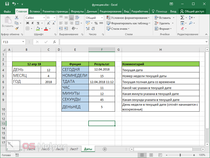 - СЕКУНДЫ – определяется сколько секунд указано в определенной дате;