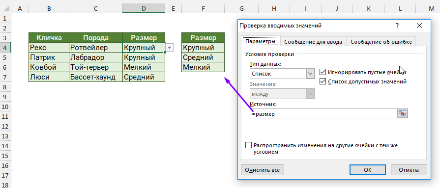 Проверка данных в Excel предназначена для запрета ввода недопустимых данных непосредственно в ячейку, но не может помешать пользователям копировать недопустимые данные.