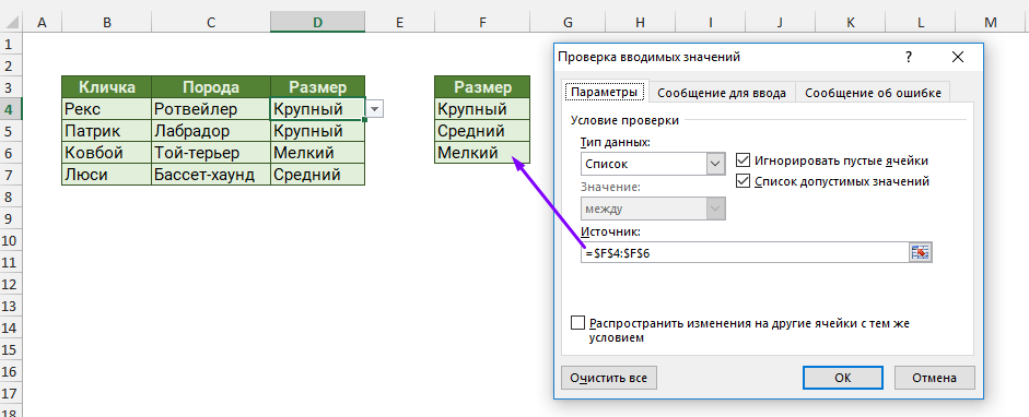 Абсолютные и относительные ссылки на ячейки в формулах проверки