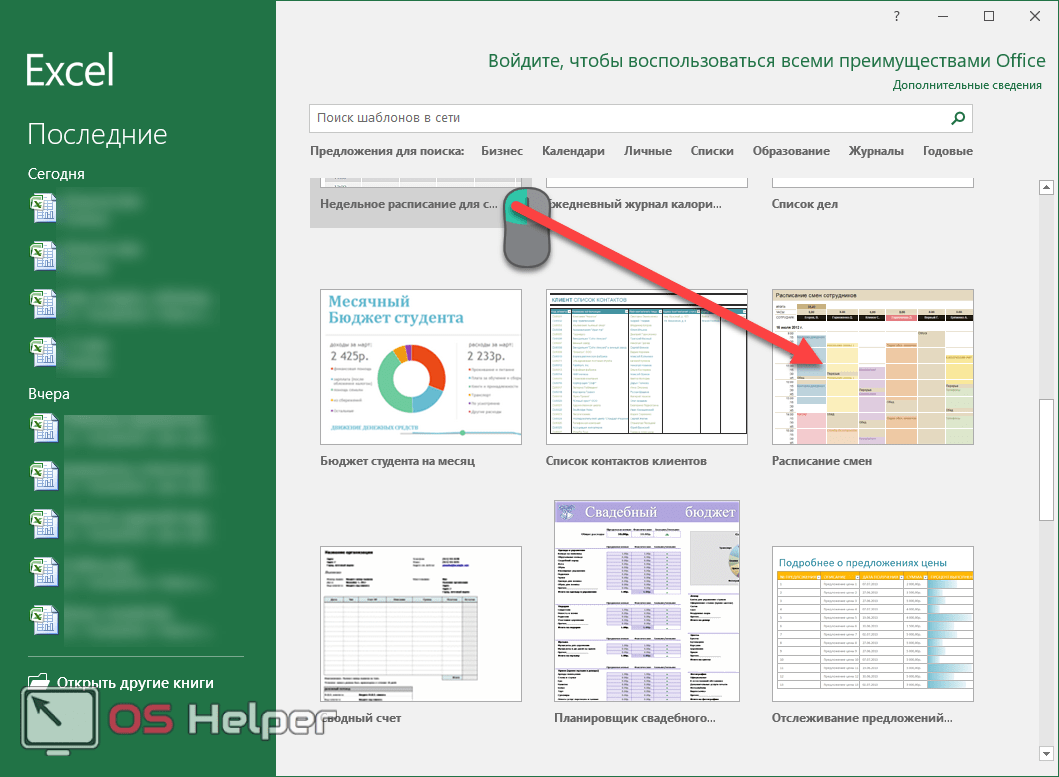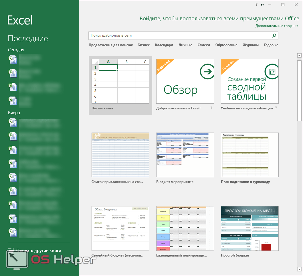 При запуске Экселя вам на выбор предлагаются следующие варианты: