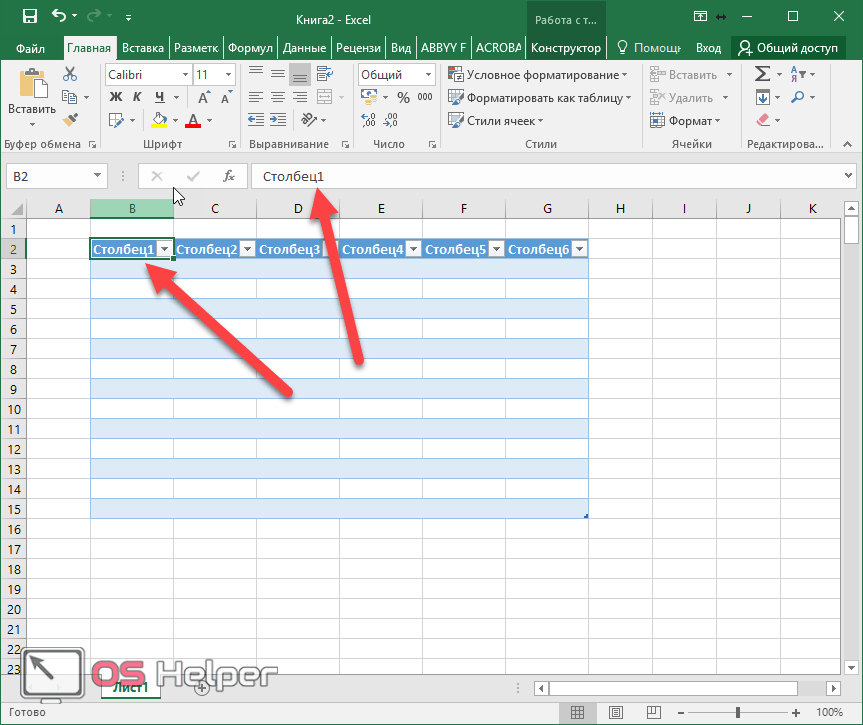 - Для того чтобы изменить название столбца, достаточно кликнуть на него. После этого начать редактирование можно прямо в этой ячейке или в строке формул.