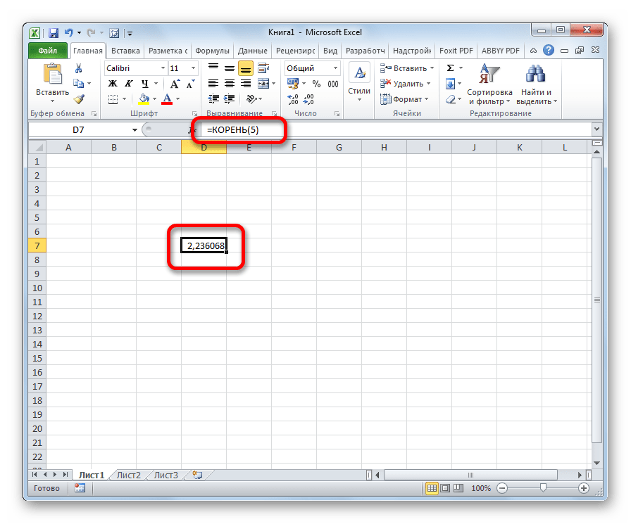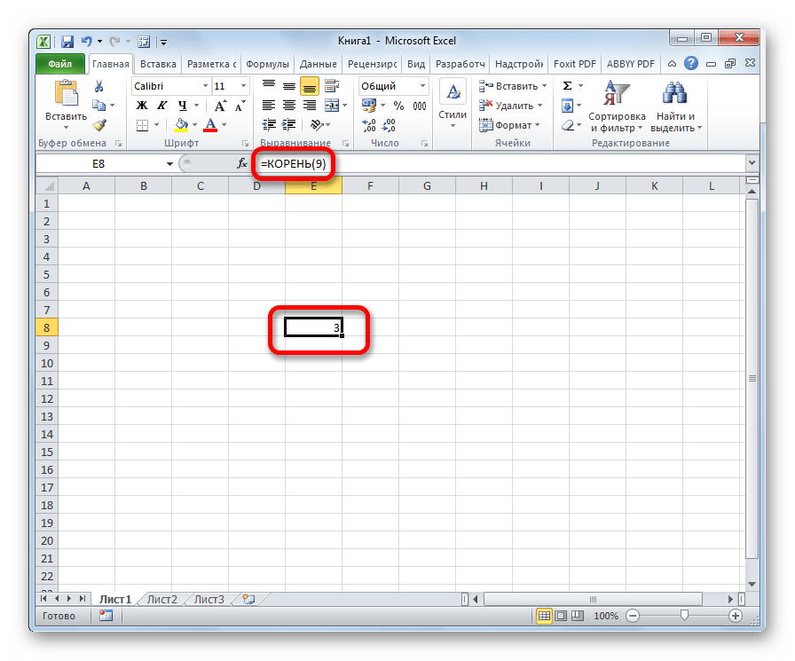 либо прописать число записать «=КОРЕНЬ(Х)», где в «Экселе» несколько,