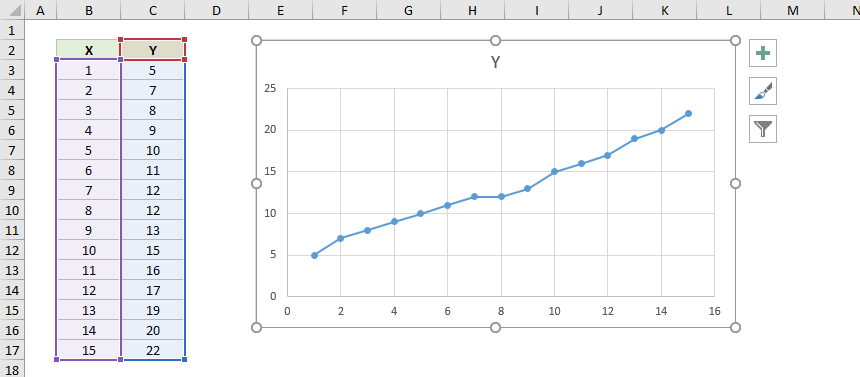 3. Выберите данные, которые хотите использовать для вычисления площади графика. Нажмите на ячейку, которая соответствует первому значению X, и зажмите левую кнопку мыши, перемещаясь до последней ячейки с данными. Отпустите кнопку мыши, когда все нужные ячейки будут выделены.