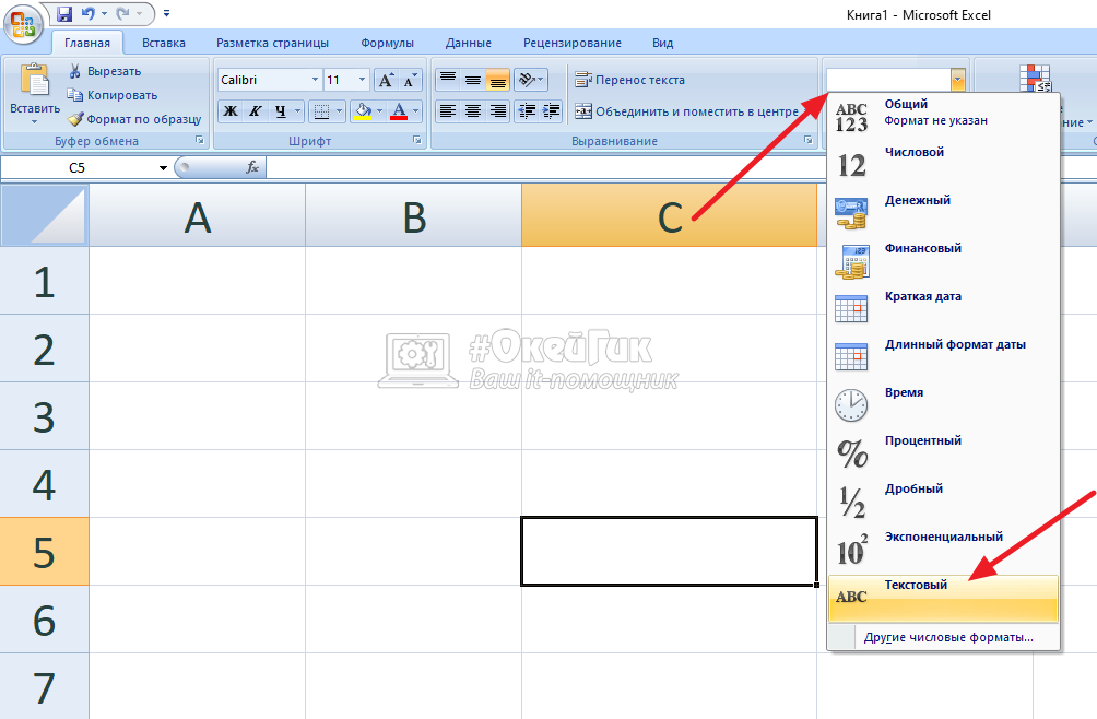 Чтобы написать число в степени, но не возводить его, выделите ячейку и поменяйте ее формат на текстовый. Для этого нужно на панели с инструментами в выпадающем меню выбрать пункт “Текстовый”.