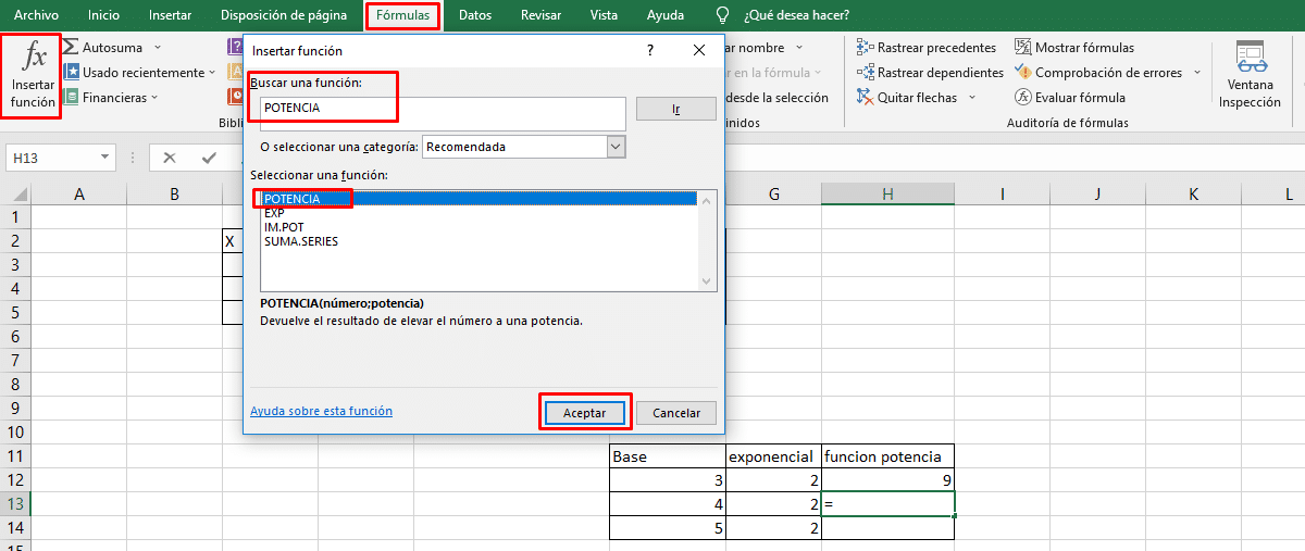 Чтобы применить функцию, вы должны понимать, как ее использовать. В аргументе «номер» Вы должны написать базу мощности, которую вы хотите рассчитать (это должно быть действительное число). В разделе «мощность» это экспонента до которого вы хотите поднять это число.