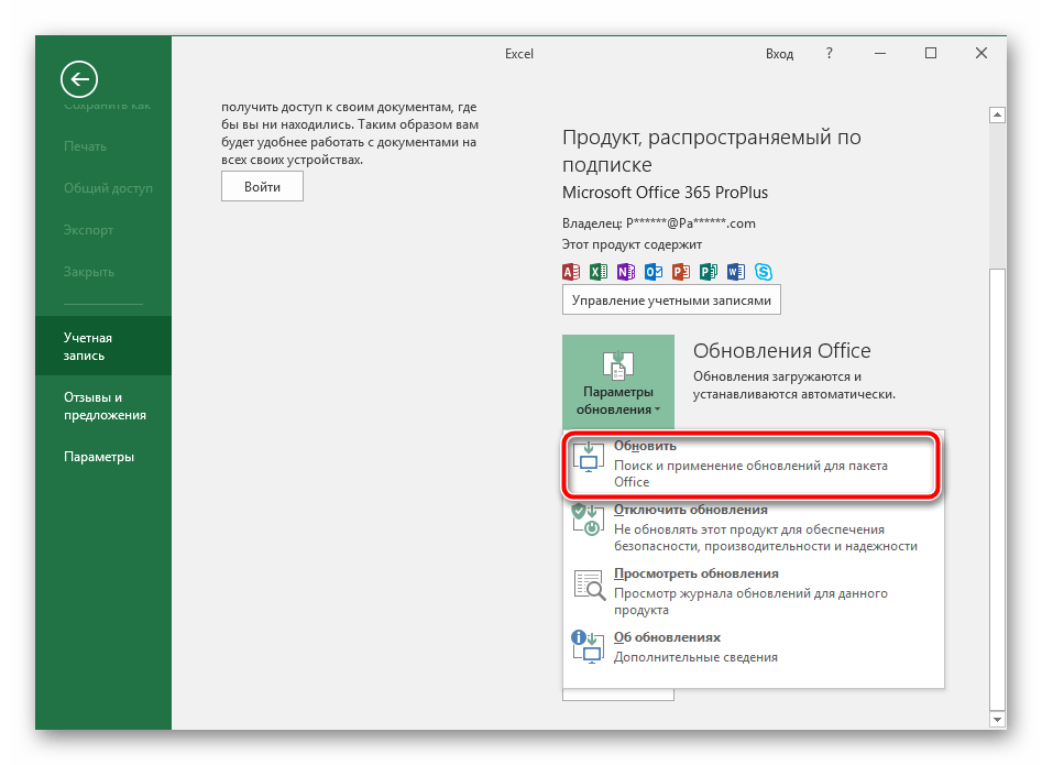 Отдельное руководство есть и для обладателей Excel 2016. Для него в прошлом году было выпущено значимое обновление, корректирующее многие параметры. Инсталляция его не всегда производится автоматически, поэтому компания Microsoft предлагает сделать это вручную.