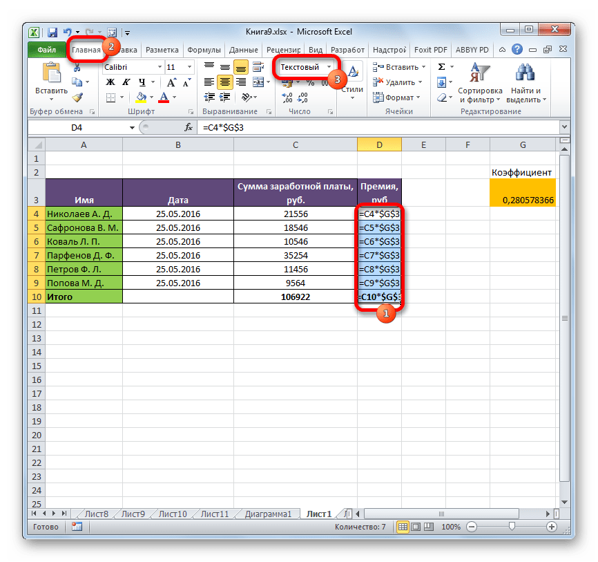 Например, если задан текстовый формат, то вместо результата мы увидим только саму формулу в виде простого текста.