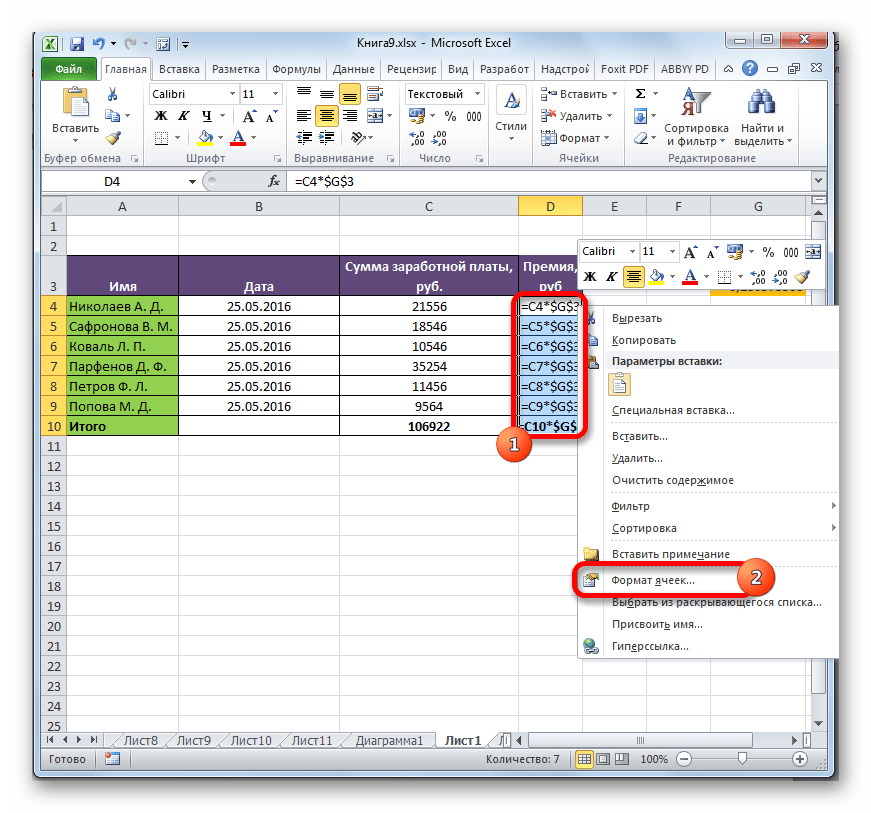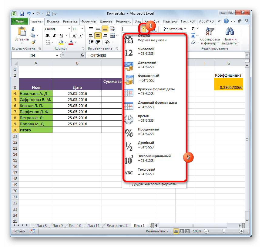 Очевидно, что формат ячейки нужно изменить, и это делается следующим образом:
