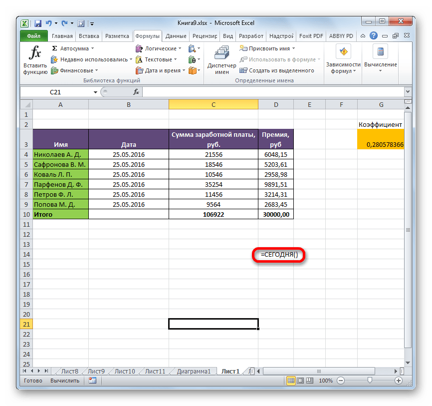 - Введите формулу на чистый лист (чтобы можно было проверить как работает данный пример).