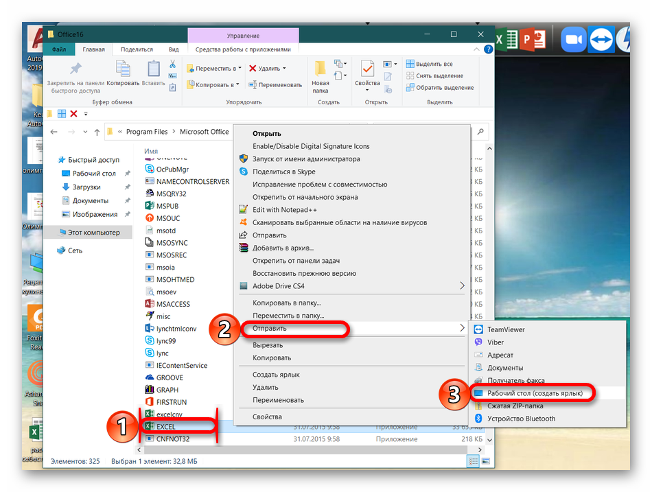 Нажмите ПКМ по выбранному файлу и выберите пункт «Отправить» – «Рабочий стол (создать ярлык)».