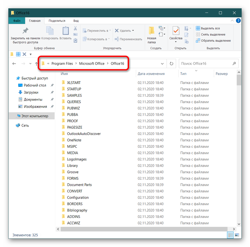 - Для этого необходимо пройти по стандартному пути C:Program FilesMicrosoft OfficeOffice16. Имя конечной папки может отличаться в зависимости от версии MS Office (Office10, Office13 и т.д.).