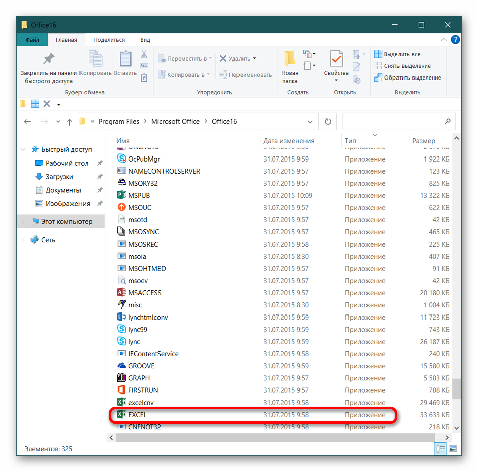 Если во время установки офисного пакета были сняты галочки «Добавить ярлык на рабочий стол» и «Создать папку в меню «Пуск», то вывести ярлык табличного процессора можно из папки установки.