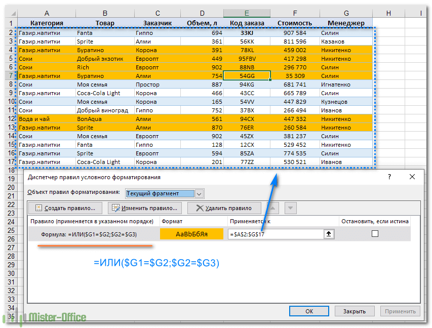Чтобы выделить только второй заказ менеджера, если у него 2 заказа идут подряд:=$G1=$G2
