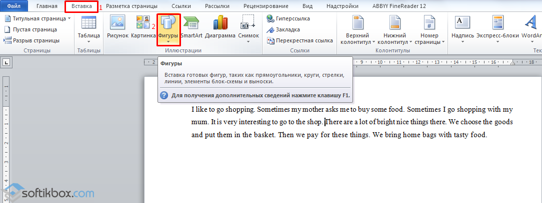 Переходим во вкладку «Вставка» и выбираем «Фигуры».