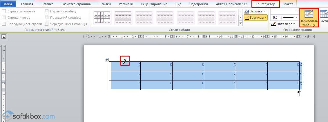 Или же выделить таблицу, нажать «Конструктор», выбрать «Нарисовать таблицу» и добавить с помощью карандаша нужную линию.