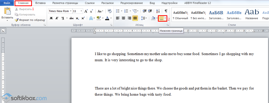 - На вкладке Главная в группе Шрифт щелкните стрелку возле Кнопки нижняя граница