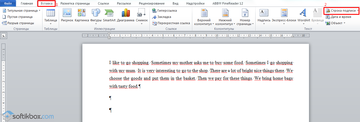 Жмём «Вставка» и выбираем значок «Строка подписи».