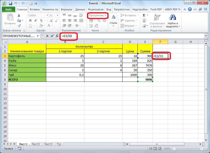 Теперь взглянем, как можно вычислять проценты, работая с табличными данными в ячейках.