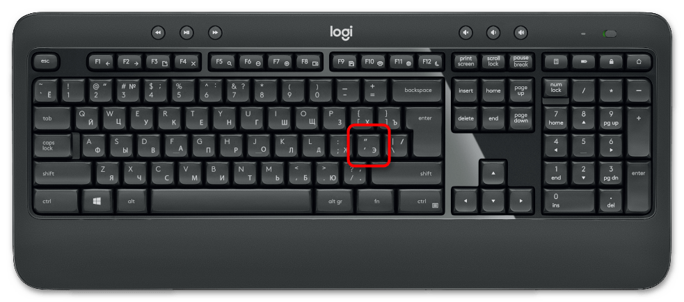 Символ апострофа есть на английской раскладке клавиатуры по умолчанию, расположен он на русской клавише «Э». Соответственно, чтобы вставить этот знак в ячейку табличного редактора, потребуется переключить язык на компьютере («Alt+Shift» или «Ctrl+Shift», зависит от настроек) и нажать требуемую кнопку. При необходимости изучите приложенное ниже руководство, чтобы избежать проблем с изменением раскладки.