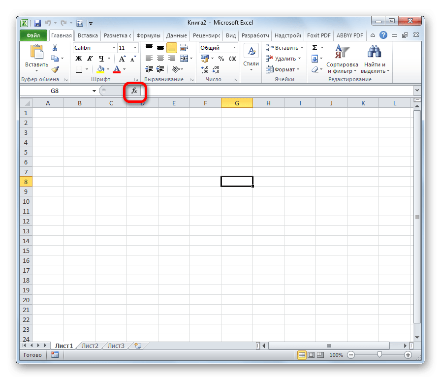 Самый простой способ сделать это — нажать кнопку «Вставить функцию» слева от панели формул. Преимущество этого метода в том, что его можно использовать с любой вкладки программы.