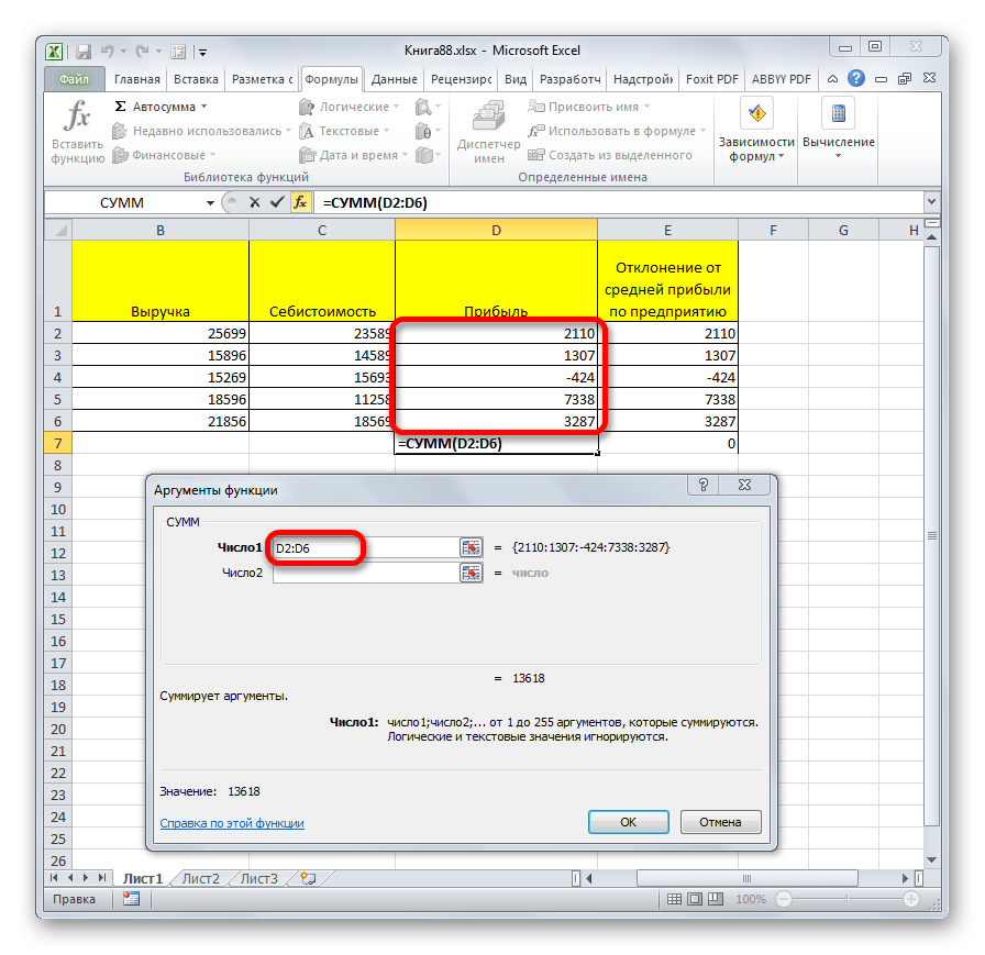 На мой взгляд, лучший способ подсчета суммы абсолютных значений в Excel – использовать вспомогательный столбец. В ячейку B2 вводим формулу: