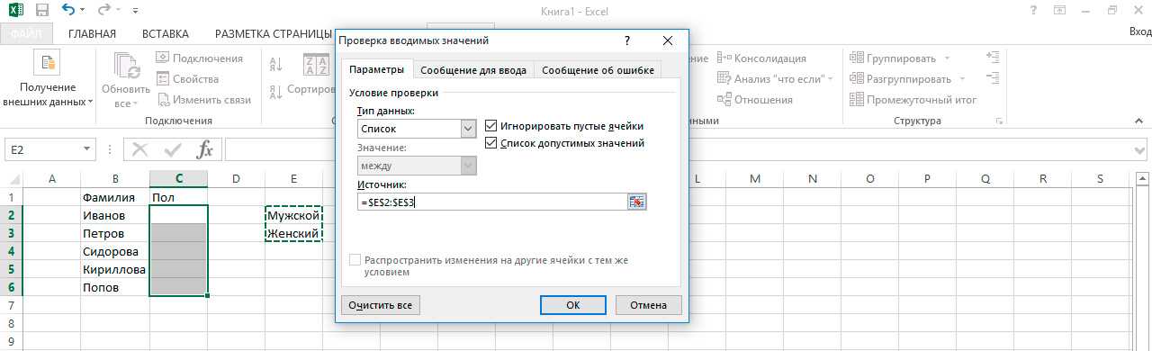 Как создать выпадающий список в Excel в ячейке и во всей колонке