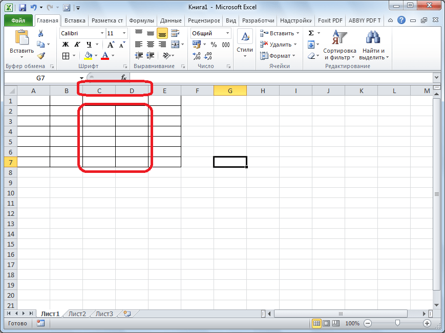 Поместите указатель на границу столбцов С и D, чтобы его значок превратился в двунаправленную стрелку.»