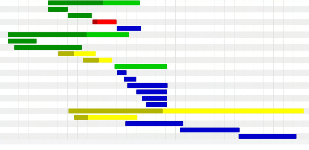 Многие из этих инструментов предлагают несколько вариантов отображения дорожной карты. Одним из наиболее удобных является диаграмма Ганта. Этот вид роадмап представляет собой график работ, состоящий из ряда отрезков, размещенных вдоль временной оси. Каждый такой отрезок соответствует отдельной задаче или подзадаче. Длина отрезка показывает продолжительность работ, а его начало и конец соответствуют моменту начала и завершения работы по конкретной задаче.