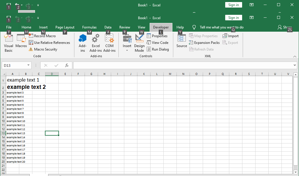 Поместите пример кода в свой программный модуль и нажмите кнопку на панели инструментов «Run Sub» или на клавиатуре «F5», курсор должен быть внутри выполняемой программы. На активном листе Excel ячейки и диапазон, выбранные в коде, окрасятся в соответствующие цвета.