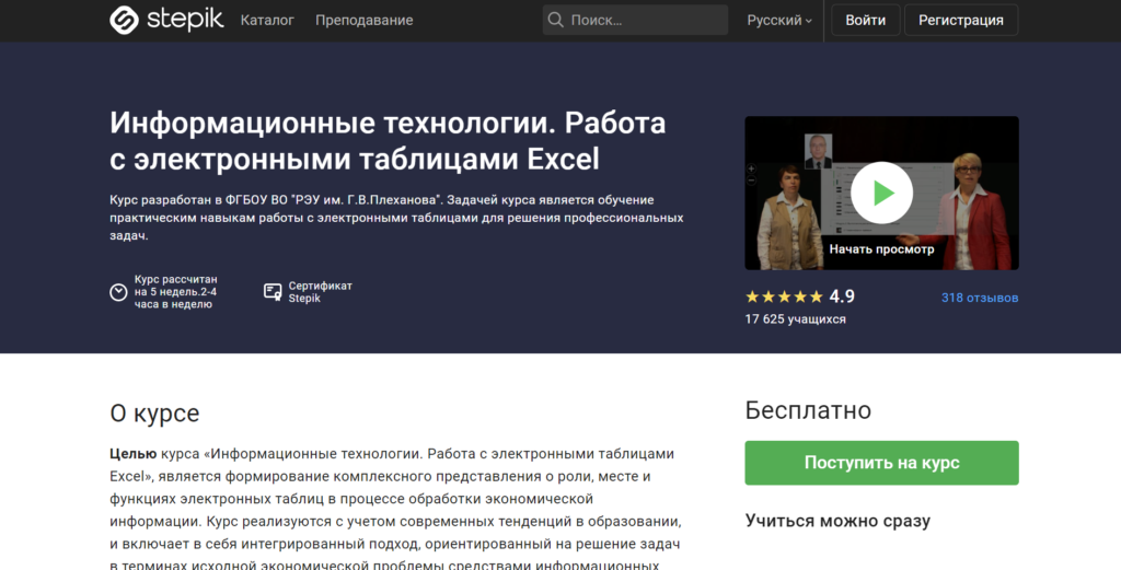 «Информационные технологии. Работа с электронными таблицами Excel» от Российского экономического университета им. Г.В.Плеханова