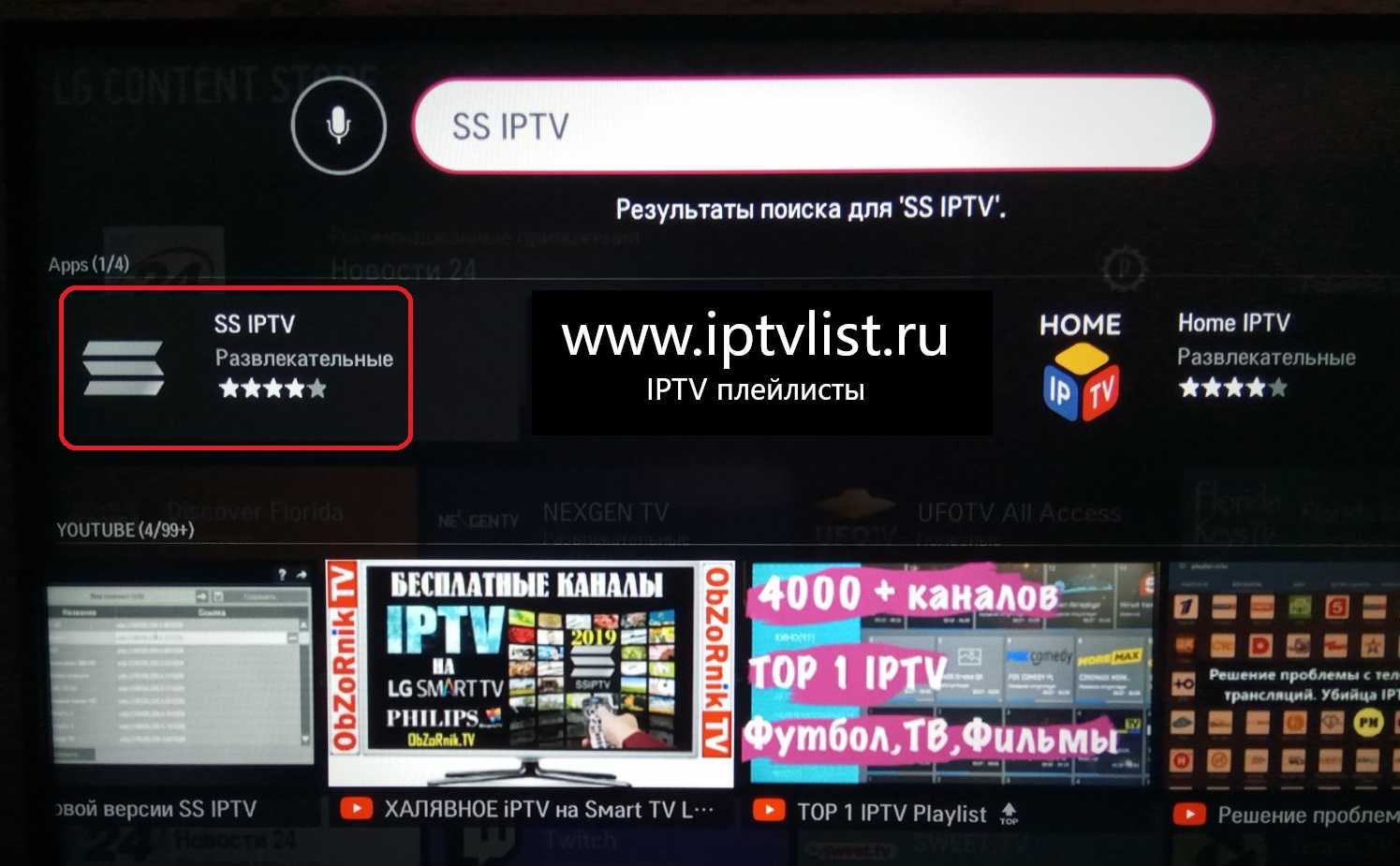- Воспользуйтесь поиском, чтобы найти приложение, выполните установку SS IPTV для Smart TV LG.
