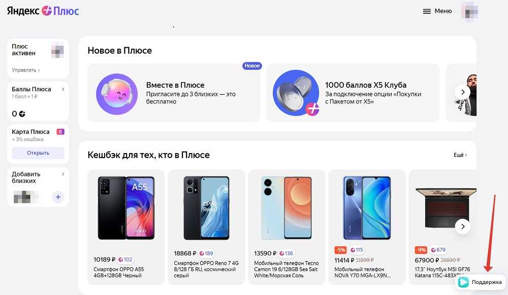 Чтобы написать оператору с компьютера, в личном кабинете на сайте Яндекс Плюс нужно открыть чат. Он находится в правом нижнем углу на странице сайта.