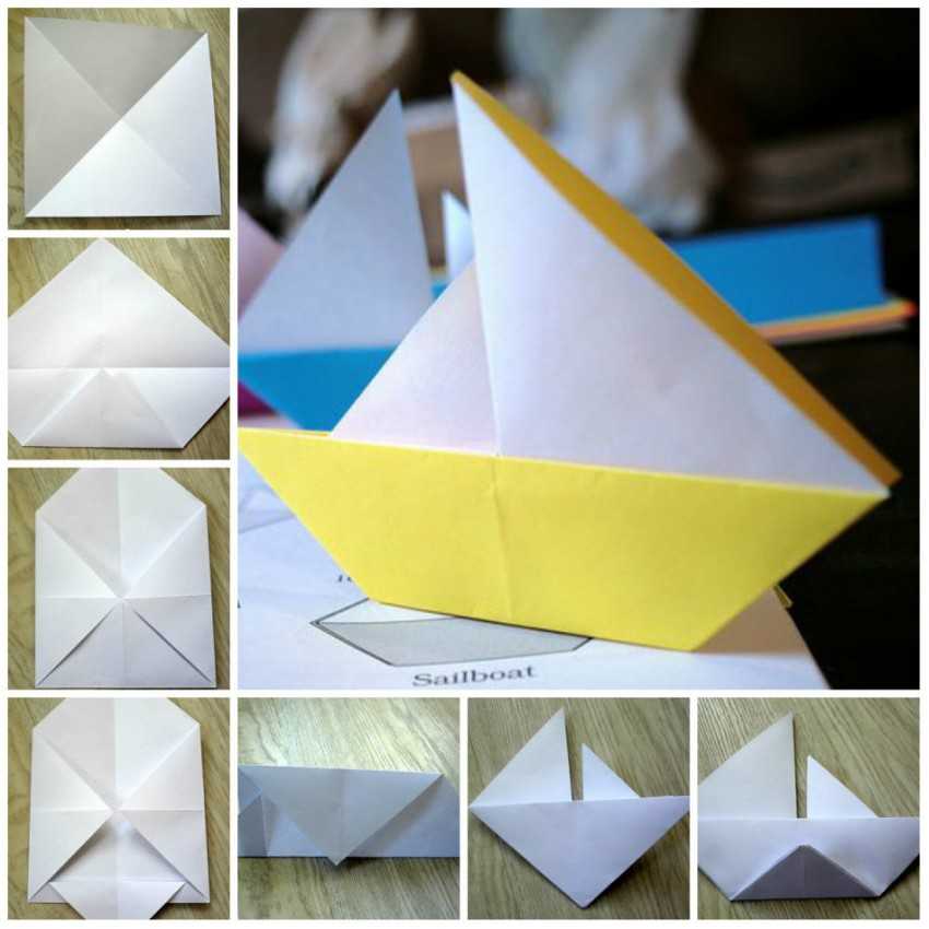 Самый популярны и доступный вид материала для поделок – бумага. Кораблик из бумаги будет просто сделать, следуя фотографиям с пошаговой инструкцией с описанием, расположенным ниже.