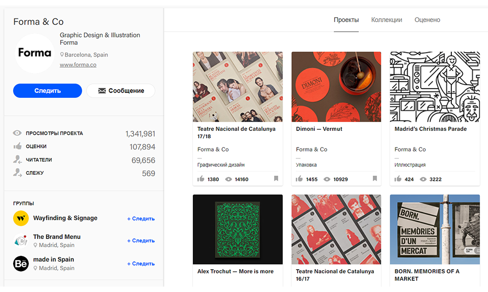 Один из крупнейших сайтов для портфолио в интернете. Здесь размещают работы фотографы, дизайнеры, иллюстраторы, художники, разработчики игр, motion-дизайнеры и видеомейкеры. Сюда можно выложить как свои личные проекты, так и командные работы, указав всех участников рабочего процесса.