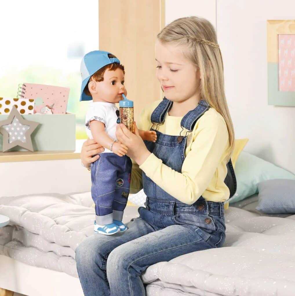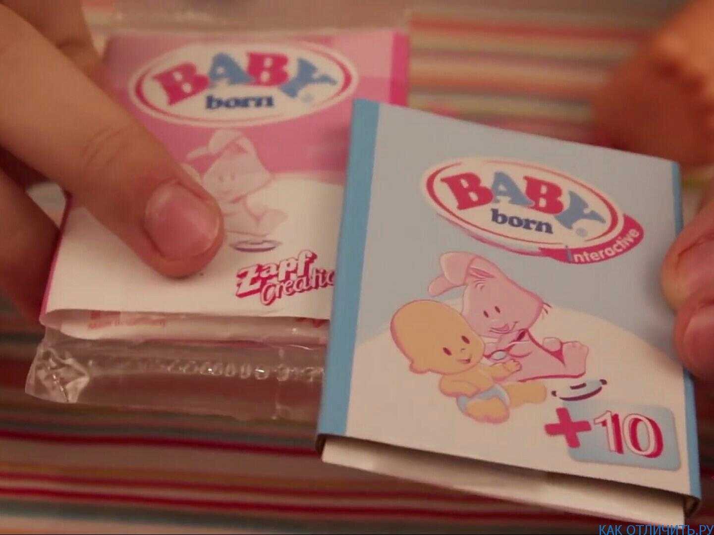Специальная бутылочка в комплекте — не просто аксессуар. Бэби борн кукла, действительно, умеет из нее пить. Наполнять бутылочку следует только водой, иначе соки, молоко или чай испортят внутренний механизм игрушки. Поить куклу необходимо в вертикальном положении.