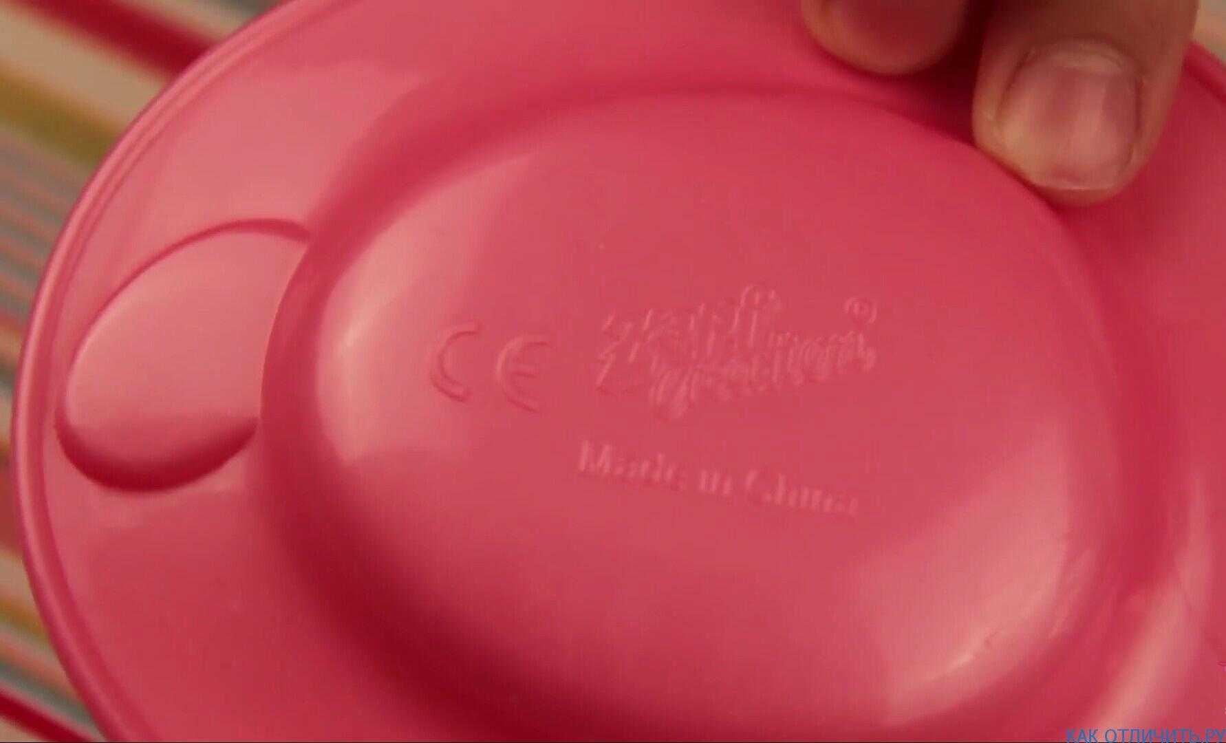 Оригинальная посуда выполнена из более прочного и твердого пластика. На ней можно встретить логотип фирмы Zapf Creation или эмблему кукол Baby Born. В подделках пластик мягче. А вот надписей намного меньше или они видоизменены.